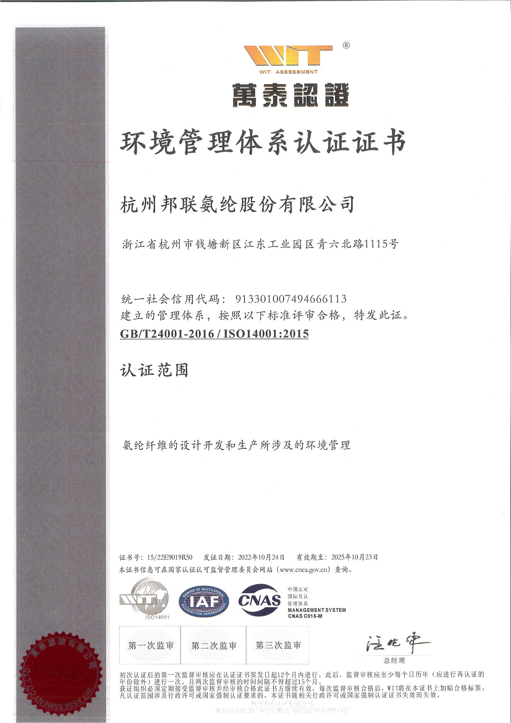 杭州邦联氨纶股份有限公司杭州邦联氨纶股份有限公司成立于2003年,座落于闻名遐迩的钱塘江畔,国家级开发区——杭州大江东产业集聚区内。公司是由兴惠化纤集团有限公司、杭州宏峰纺织集团有限公司、浙江金洋控股集团有限公司、浙江邦隆投资有限公司和顺龙国际贸易有限公司共同投资兴建,是一家实力强大、技术底蕴深厚、人力资源丰富、管理机制规范、产学研配套的合资企业。公司运用ISO9001、ISO14001和OHSAS18001认证管理体系,构建规范化、信息化、流程化的企业管理模式